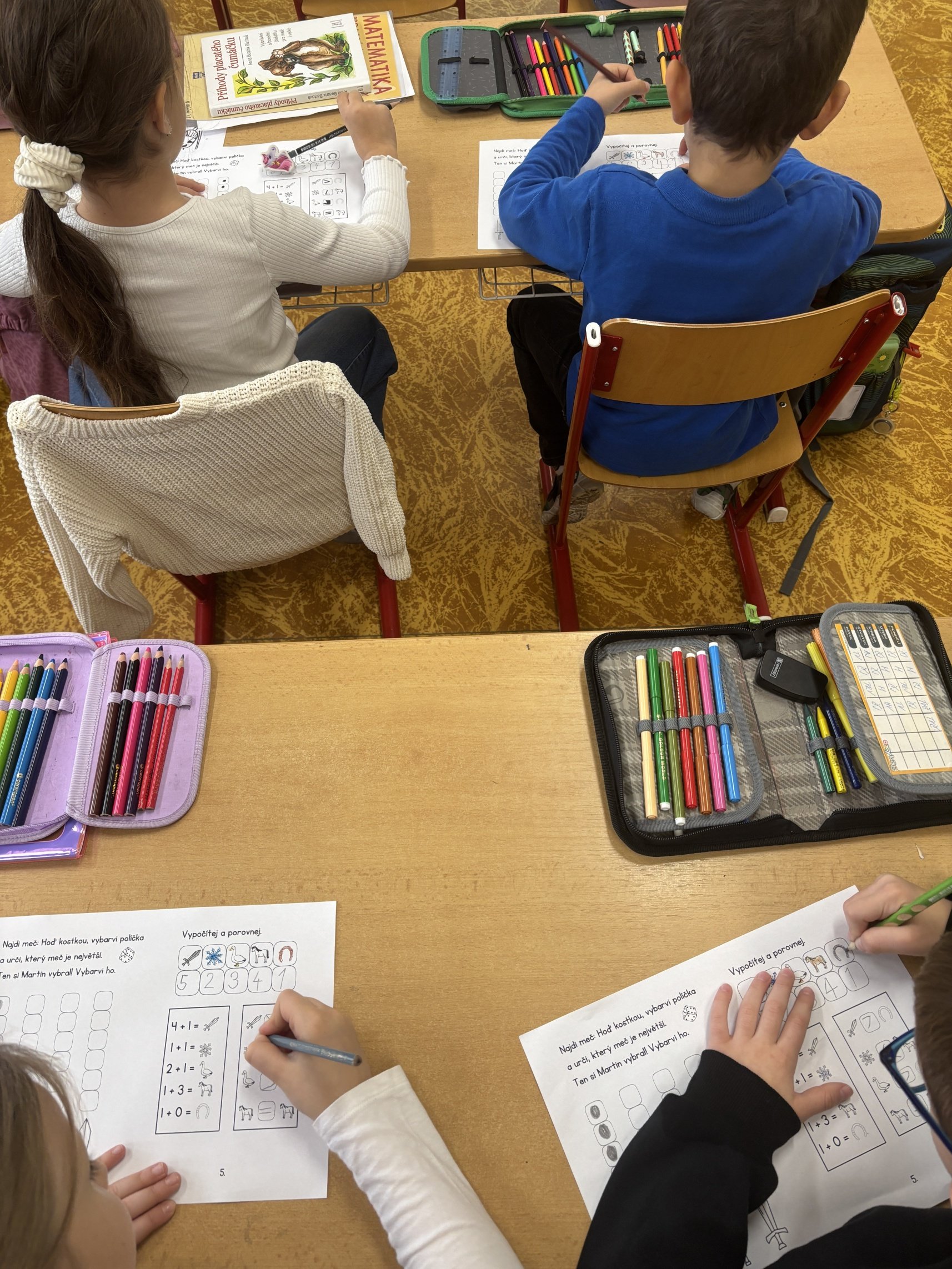 Naše práce vyvrcholila výrobou knížky o svatém Martinovi, do které jsme s dětmi zařadili celkem šest stránek plných úkolů. V nich si žáci procvičili dovednosti z českého jazyka – psali, skládali slova, určovali počet slabik a rozvíjeli grafomotoriku. Nezapomněli jsme ani na matematiku, kde jsme porovnávali čísla do 6, určovali jejich počet a zkoušeli si i osovou souměrnost. V části věnované prvouce jsme si povídali o tom, kdo svatý Martin byl, a proč se říká, že přijíždí na bílém koni.