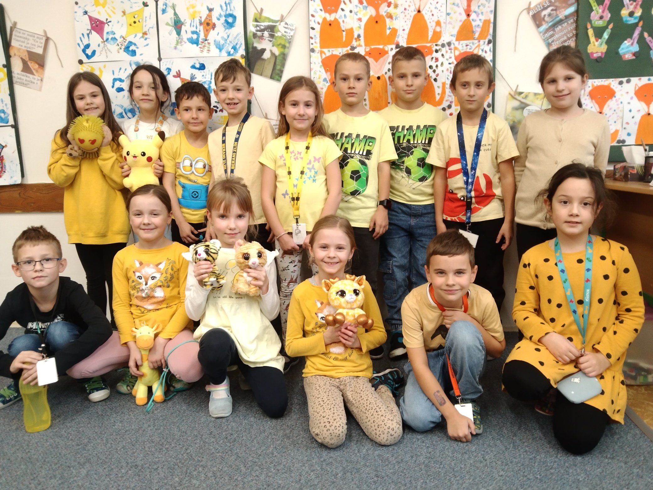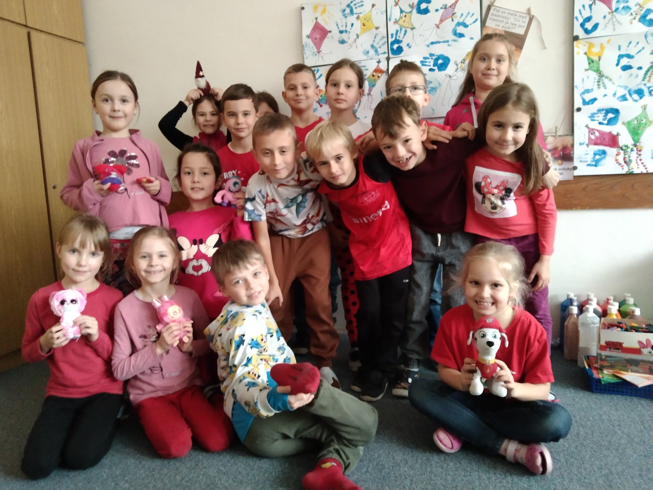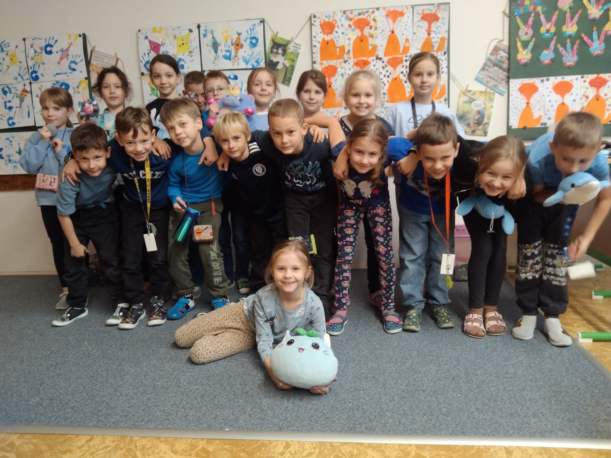 V rámci týdne zaměřeného na téma ,,čas" jsme si spolu s dětmi vymysleli program, který nám zpestřil dlouhý a pošmourný tyden před adventem. Na každý den byla stanovena jedná barvičky (žlutá, modrá, červená, zelená a pestrobarevná) a děti i s paními vychovatelkami chodily každý den oblečení v této barvě. Děti si nosily i hračky, plyšáky nebo jiné doplňky ve stanovené barvě - proto jsme si užili i prohlídku všech možných barevných plyšáků, autíček a dalších hraček.