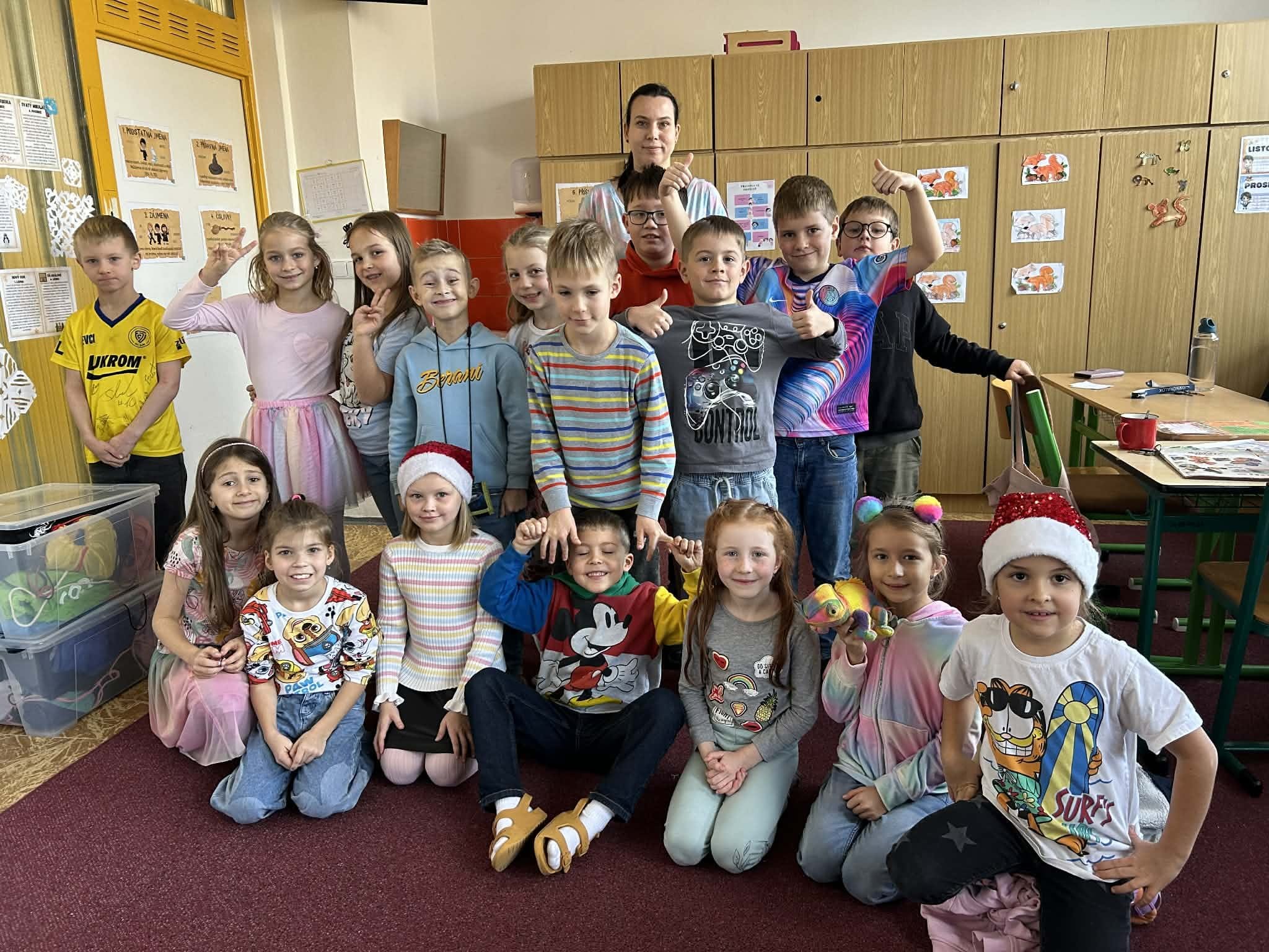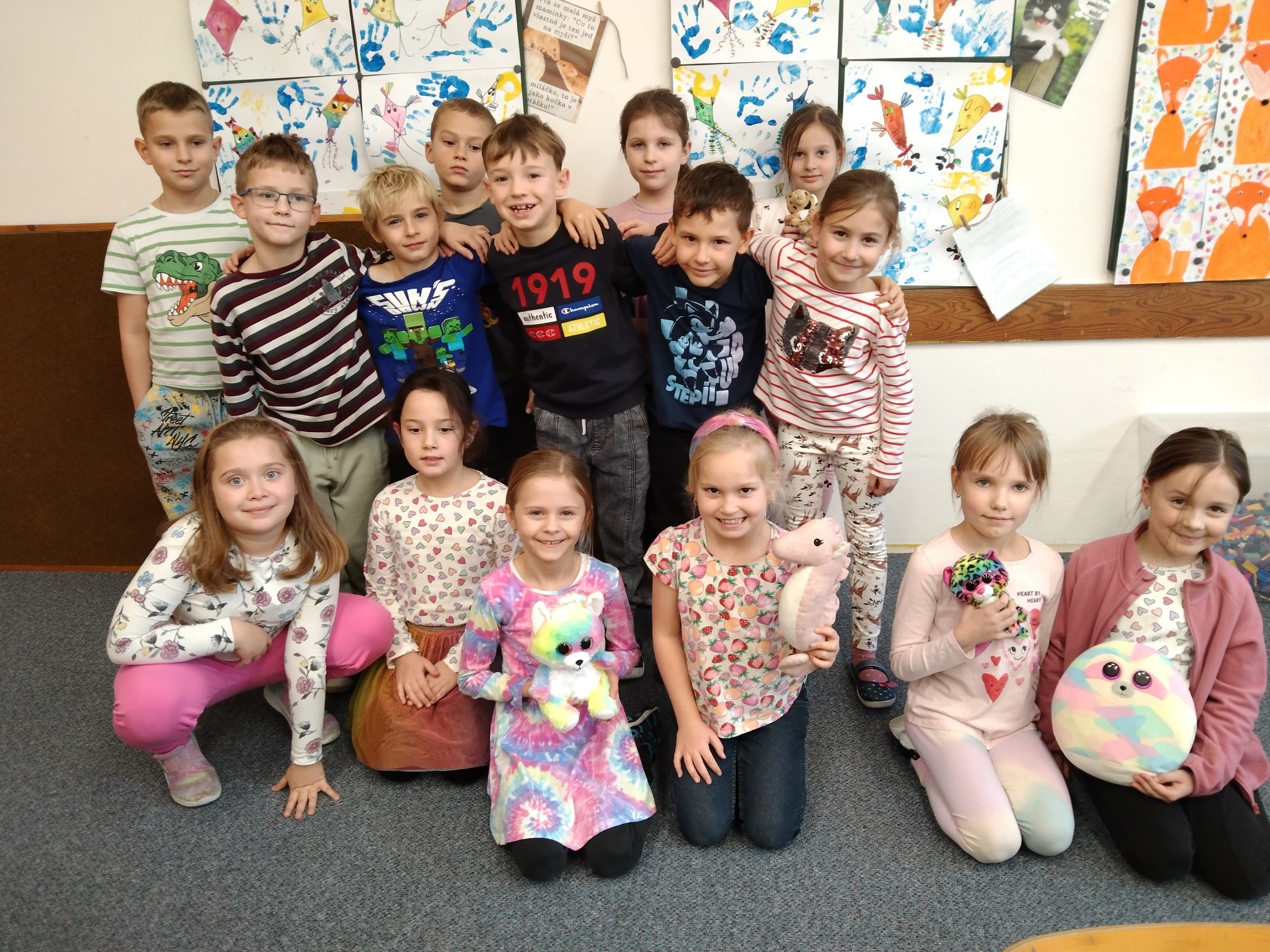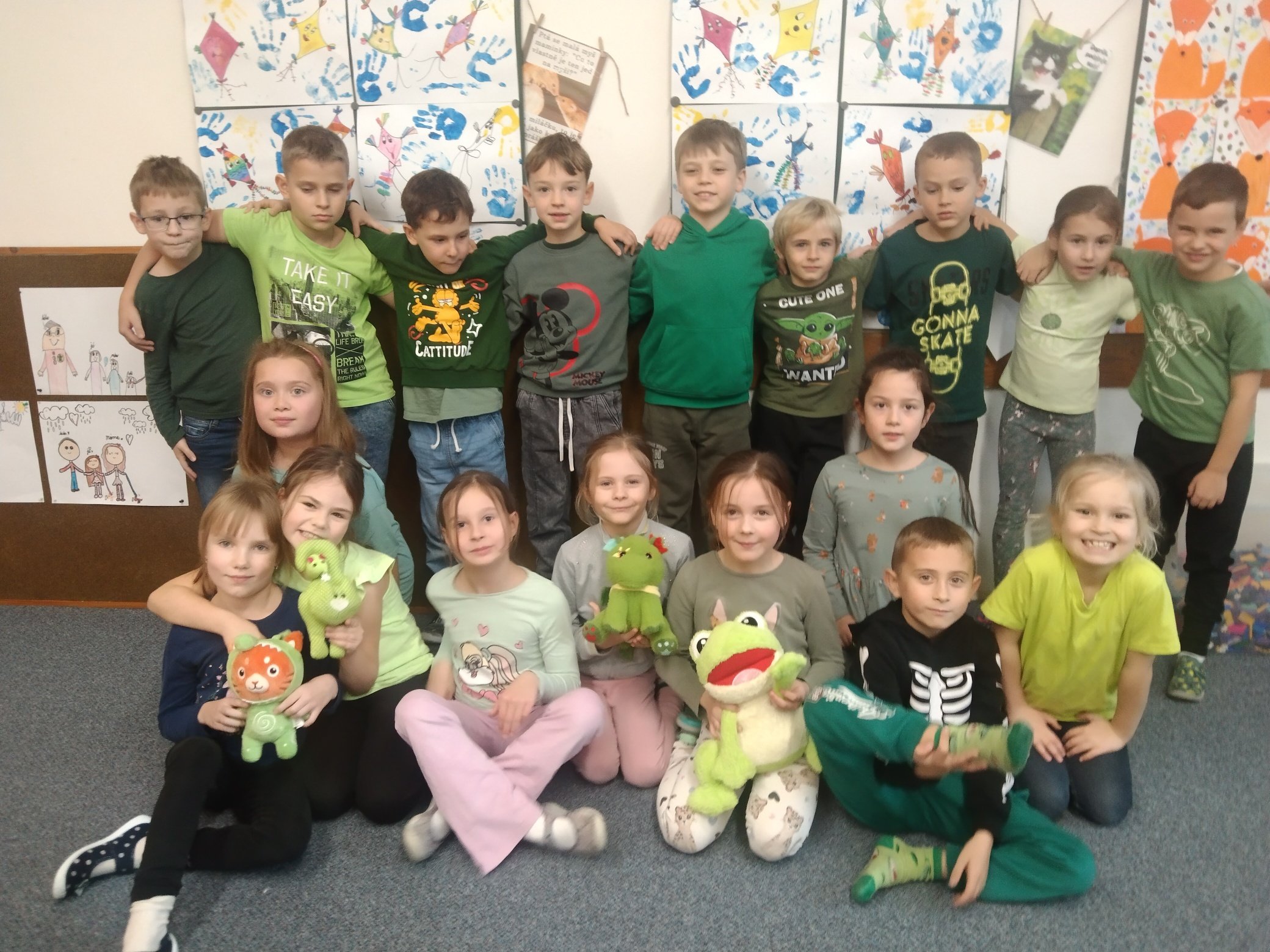 V rámci týdne zaměřeného na téma ,,čas" jsme si spolu s dětmi vymysleli program, který nám zpestřil dlouhý a pošmourný tyden před adventem. Na každý den byla stanovena jedná barvičky (žlutá, modrá, červená, zelená a pestrobarevná) a děti i s paními vychovatelkami chodily každý den oblečení v této barvě. Děti si nosily i hračky, plyšáky nebo jiné doplňky ve stanovené barvě - proto jsme si užili i prohlídku všech možných barevných plyšáků, autíček a dalších hraček.