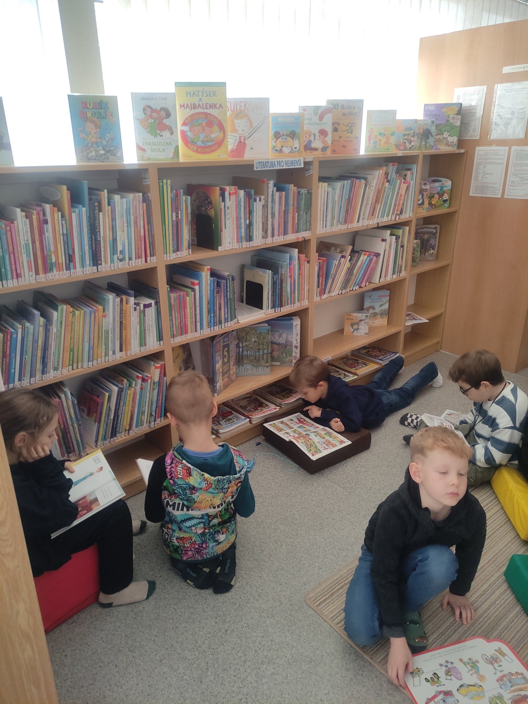 Během měsíce listopadu jsme s dětmi navštívili knihovnu na Podlesí, kde si děti mohly prohlédnout a vypůjčit různé dětské knihy. Paní knihovnice měla pro děti připraveny i krátký program na téma ,,Lesní zvířátka".