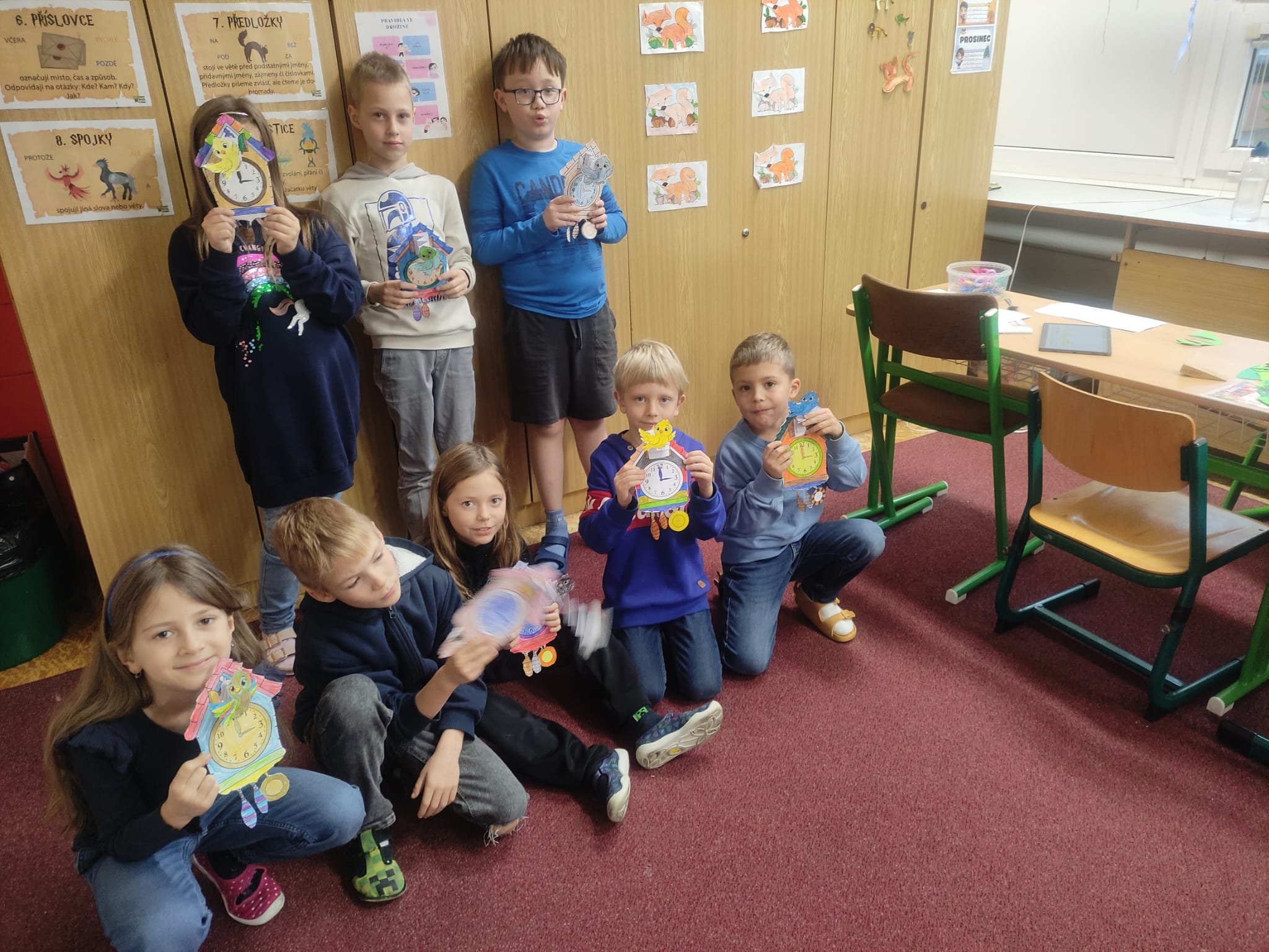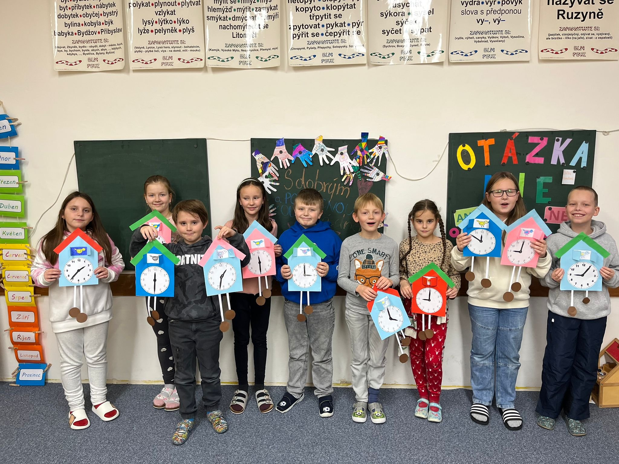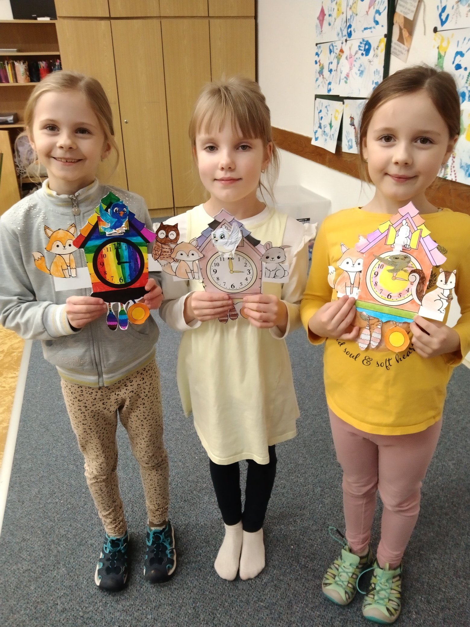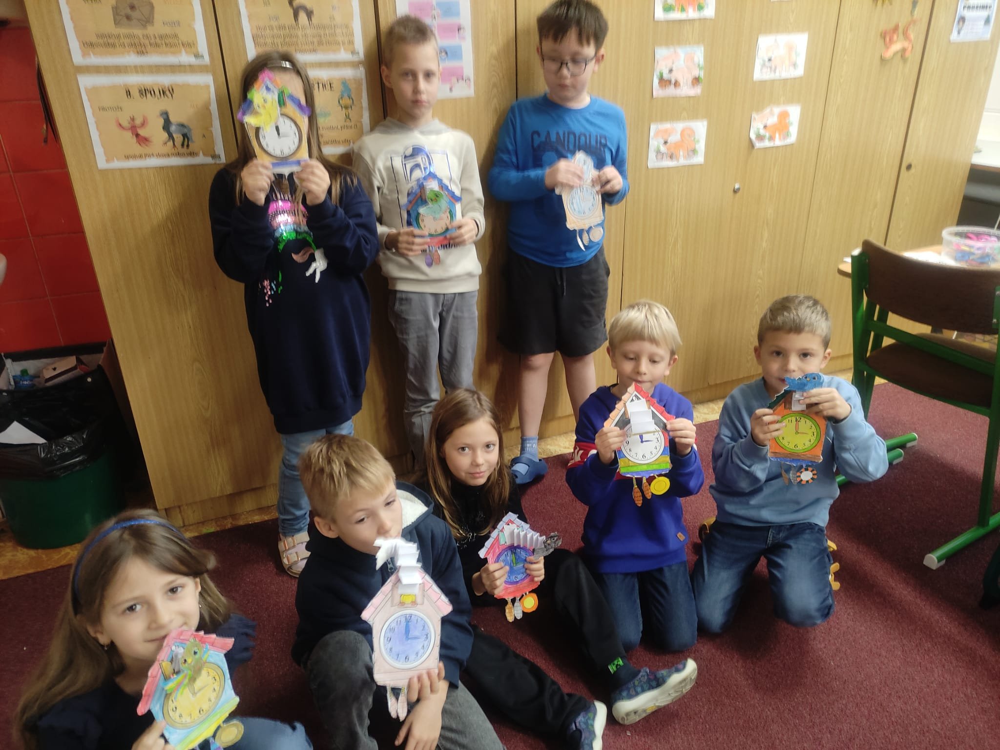 Další ze zajímavých projektů,který u nás v družině proběhl byl projekt zaměřený na měření času. Během celého týdne jsme s dětmi opakovali znaky různých ročních období, dny v týdnu a měsíce v roce, učili se poznávat hodiny a odhadovat, kolik času mi zabere různá činnost, vyráběli jsme náramkové i kukačkové hodiny, vybarvovali omalovánky, luštili křížovky a osmisměrky s daným tématem.