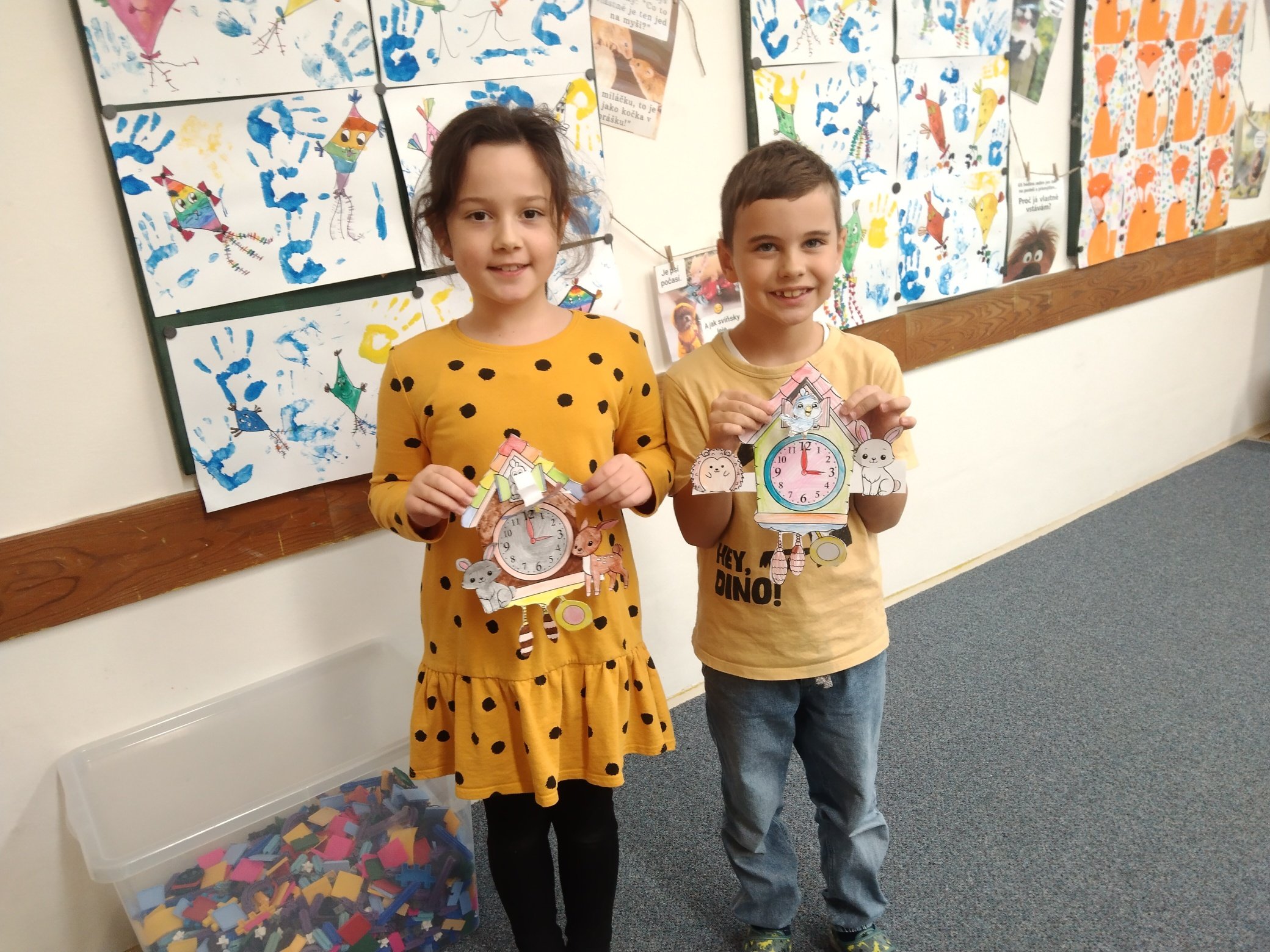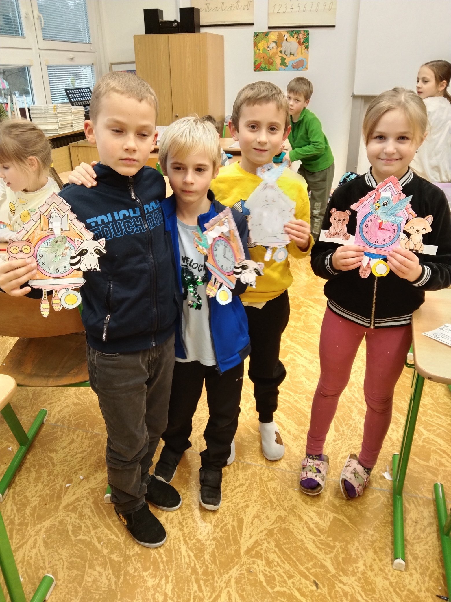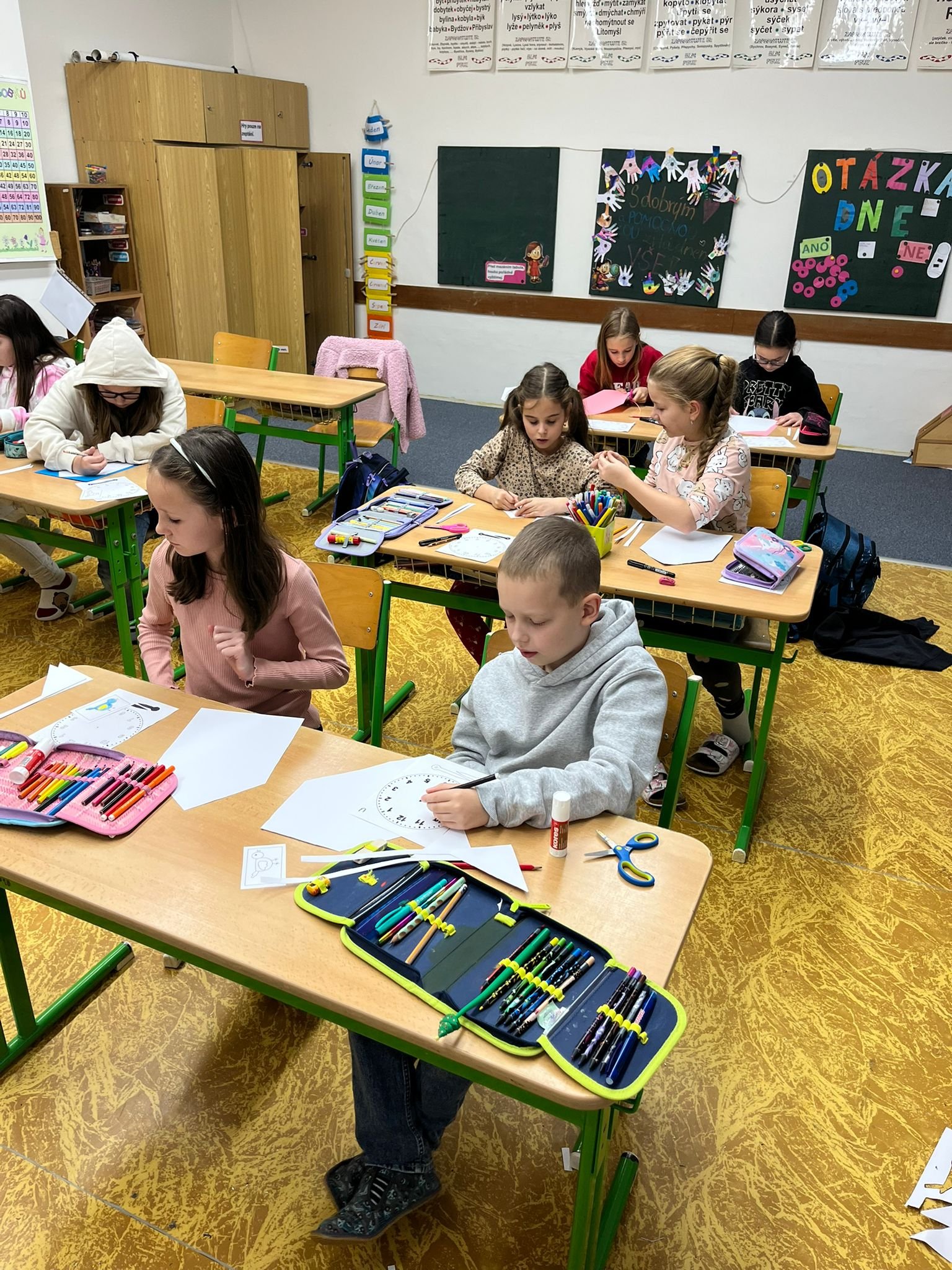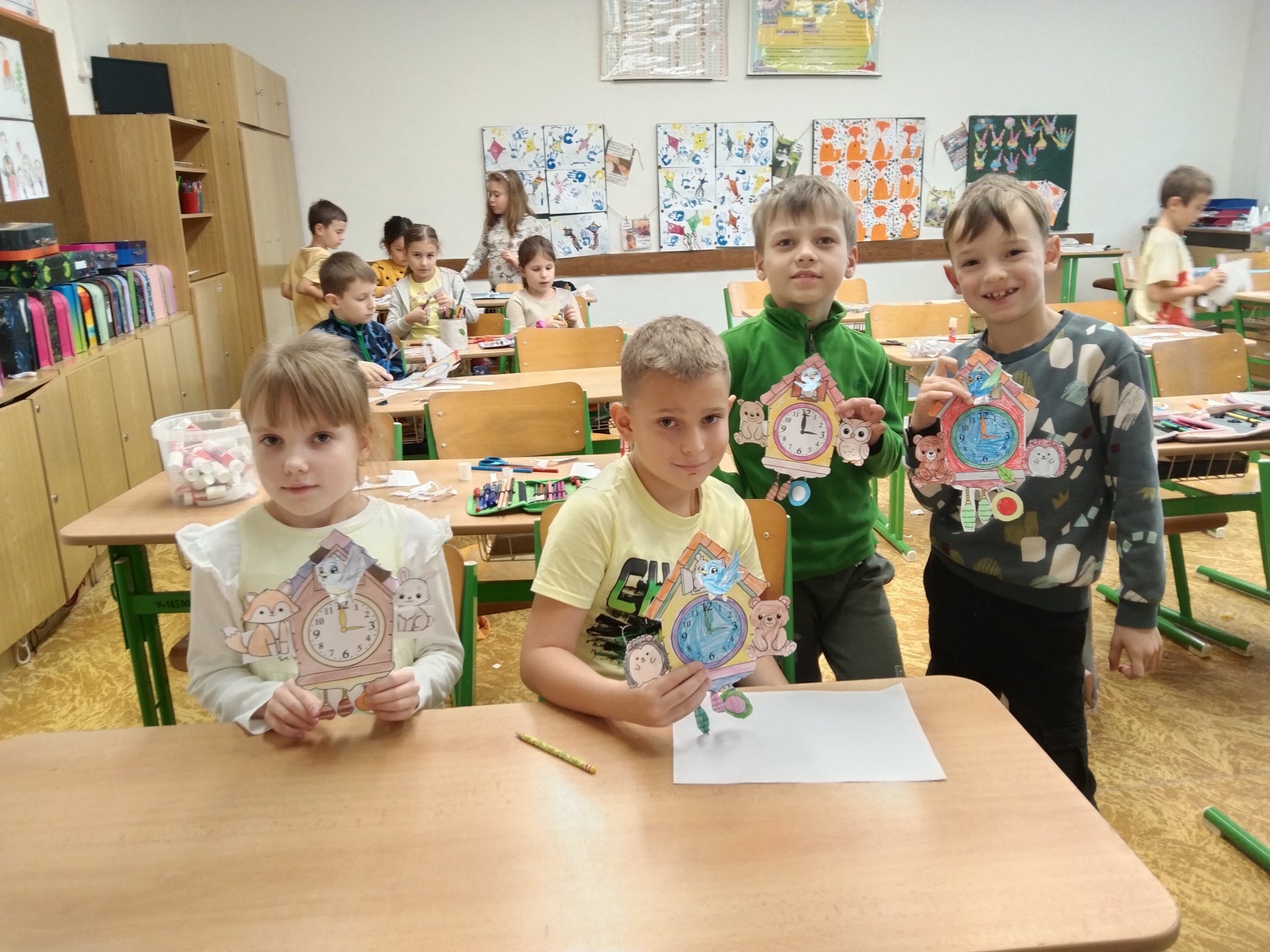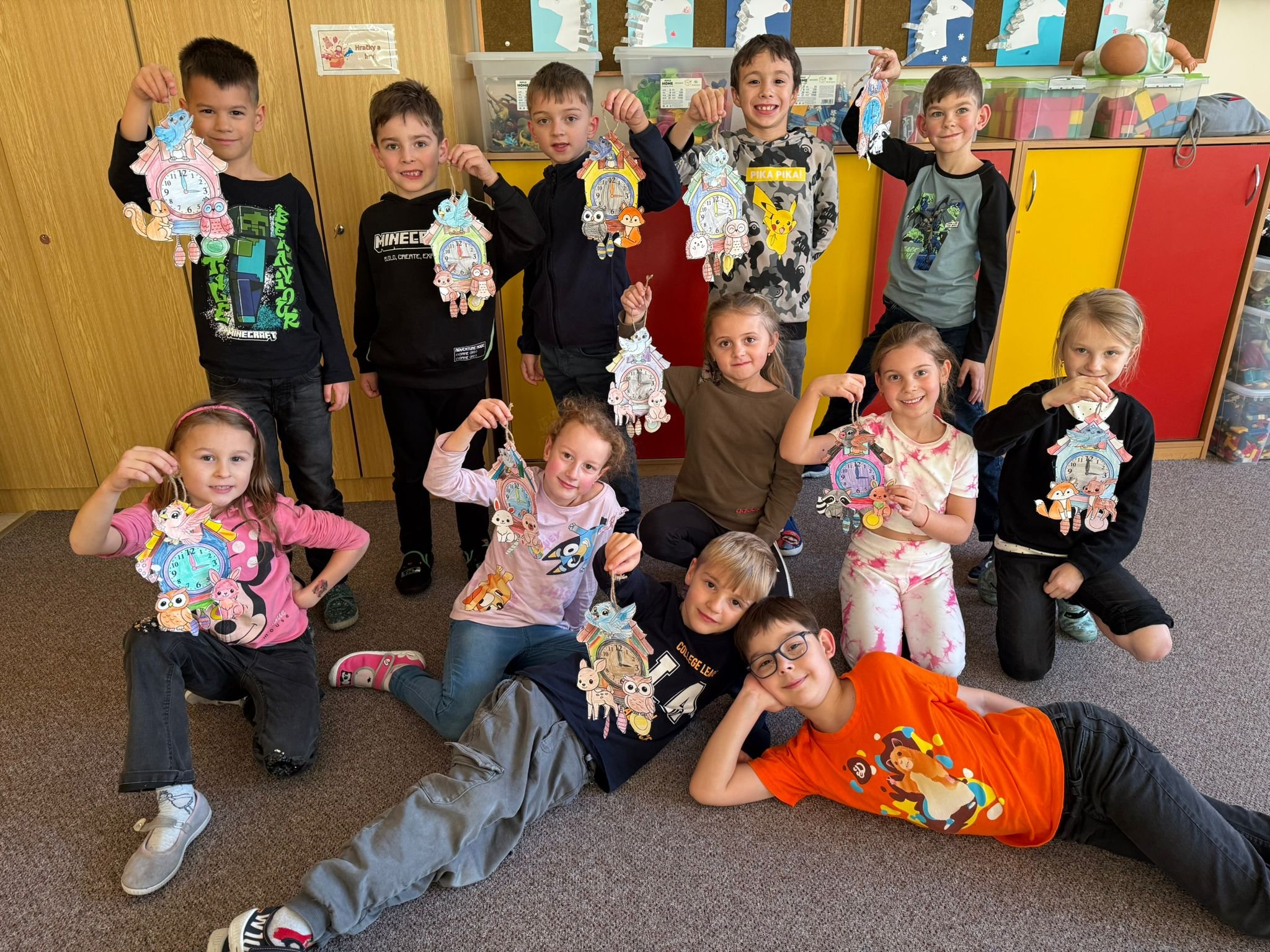 Další ze zajímavých projektů,který u nás v družině proběhl byl projekt zaměřený na měření času. Během celého týdne jsme s dětmi opakovali znaky různých ročních období, dny v týdnu a měsíce v roce, učili se poznávat hodiny a odhadovat, kolik času mi zabere různá činnost, vyráběli jsme náramkové i kukačkové hodiny, vybarvovali omalovánky, luštili křížovky a osmisměrky s daným tématem.