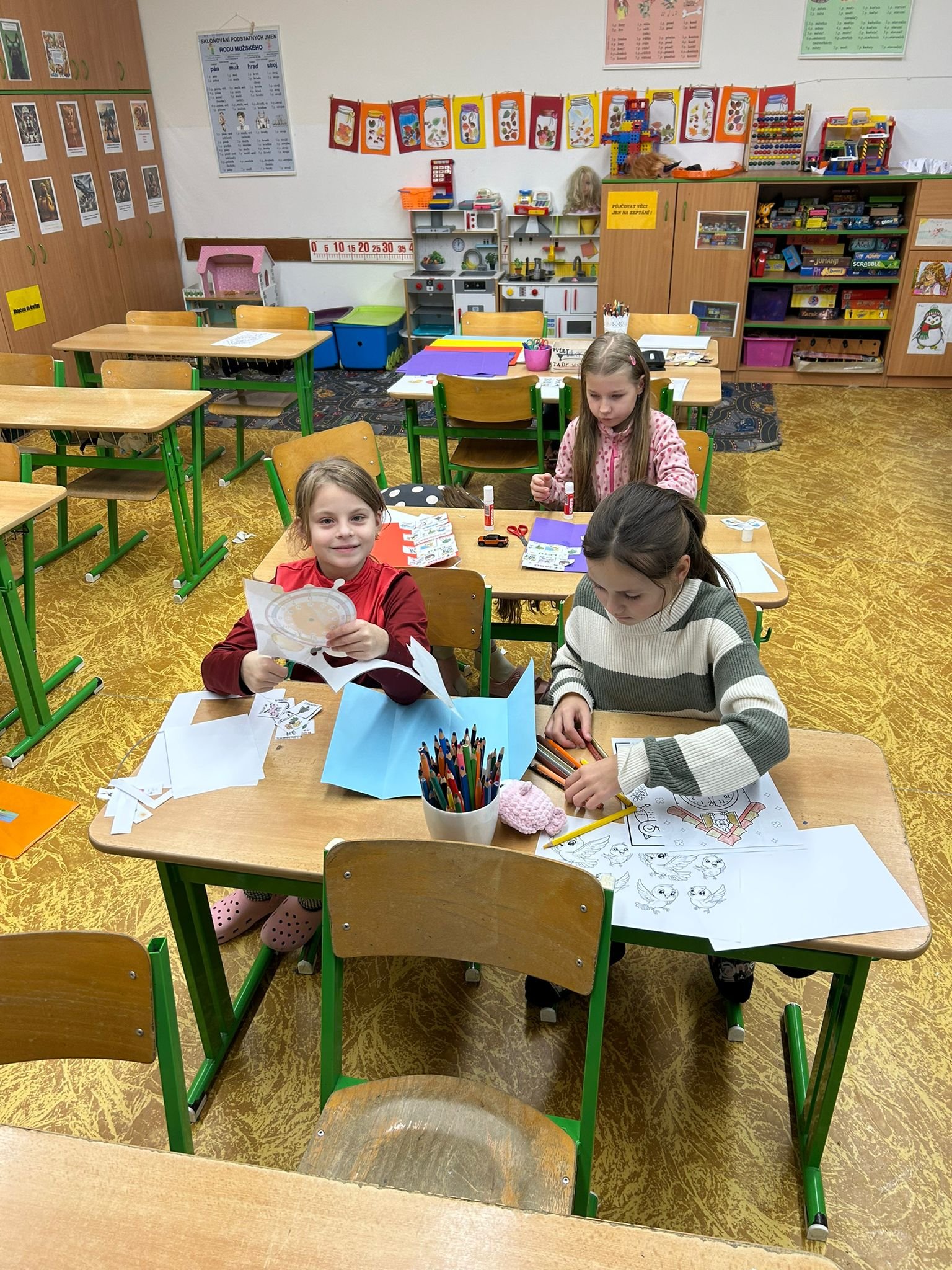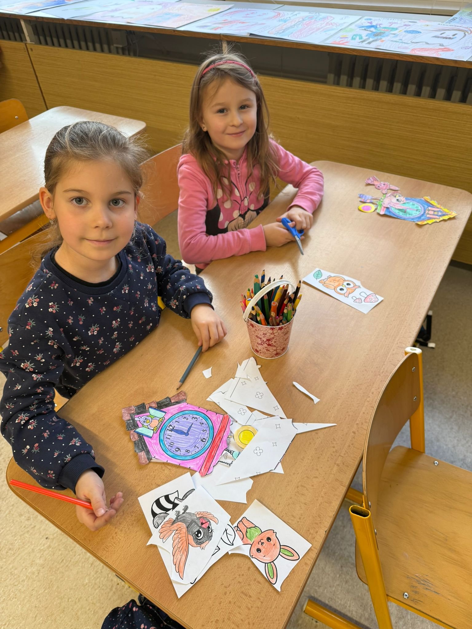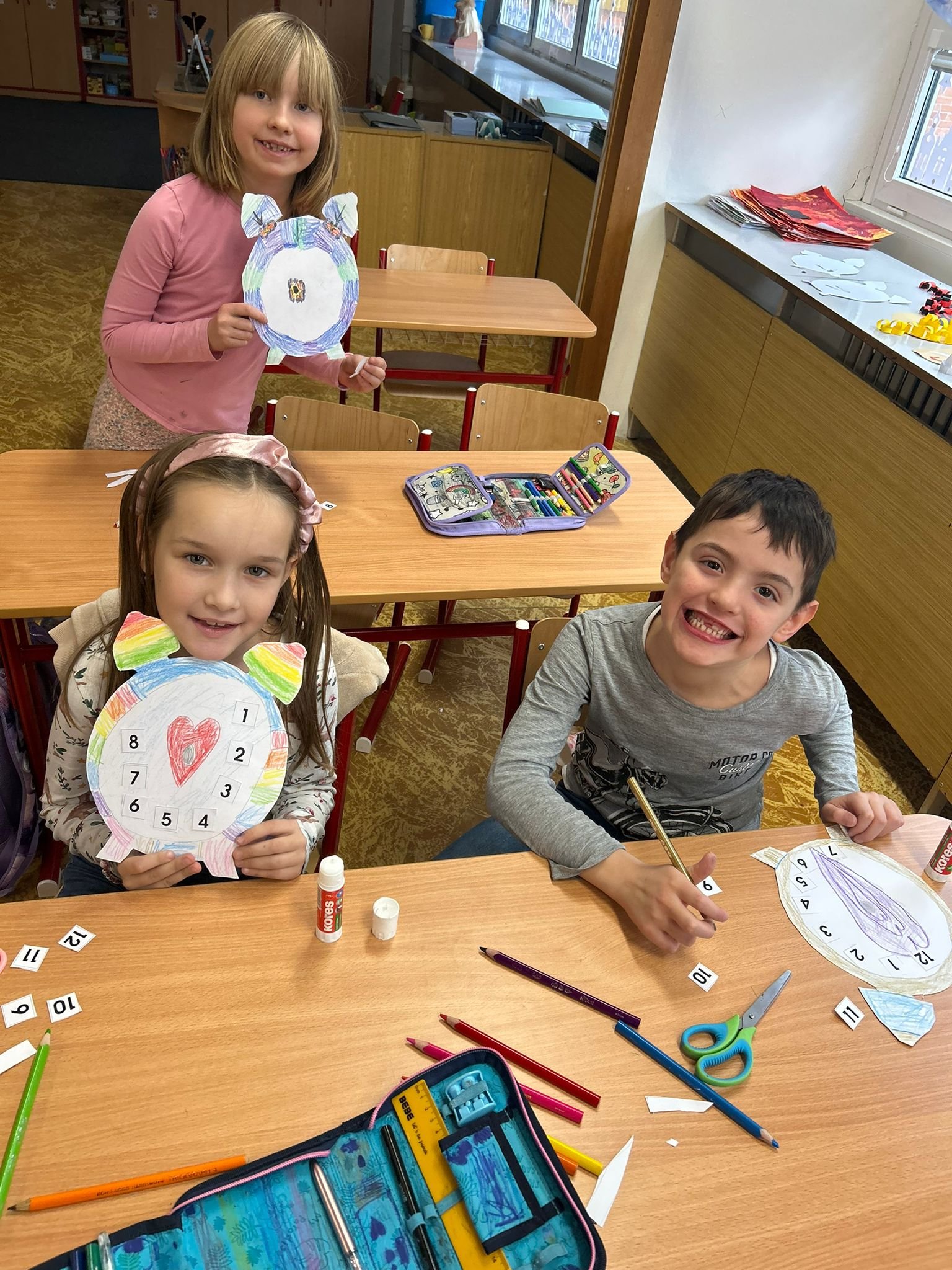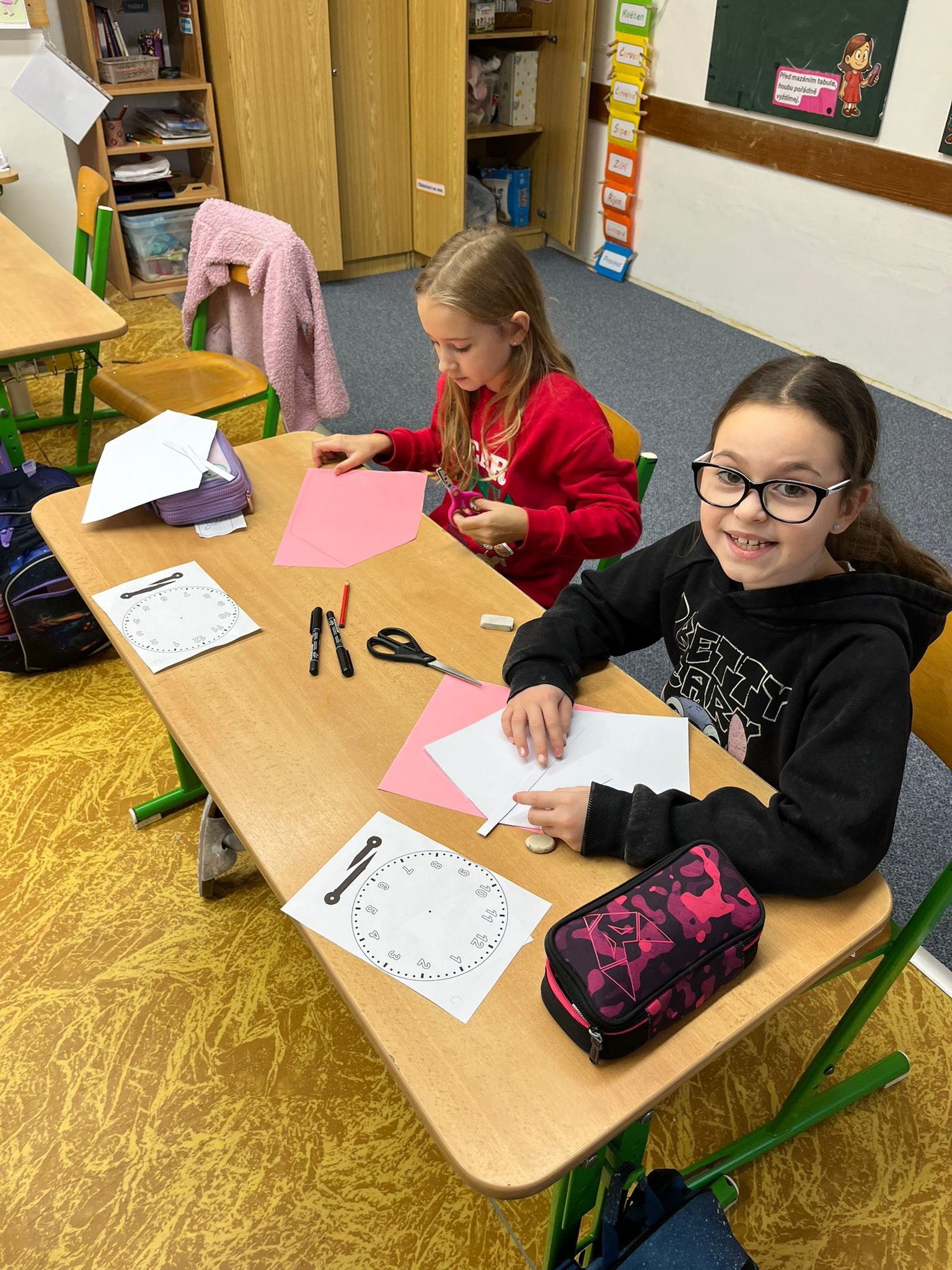 Další ze zajímavých projektů,který u nás v družině proběhl byl projekt zaměřený na měření času. Během celého týdne jsme s dětmi opakovali znaky různých ročních období, dny v týdnu a měsíce v roce, učili se poznávat hodiny a odhadovat, kolik času mi zabere různá činnost, vyráběli jsme náramkové i kukačkové hodiny, vybarvovali omalovánky, luštili křížovky a osmisměrky s daným tématem.