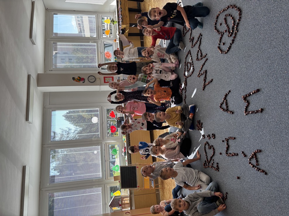 Dne 3. října jsme s dětmi v 1.B pracovali na vyvození nové slabiky „ma“. Abychom si učení zpestřili, využili jsme k práci kaštany.