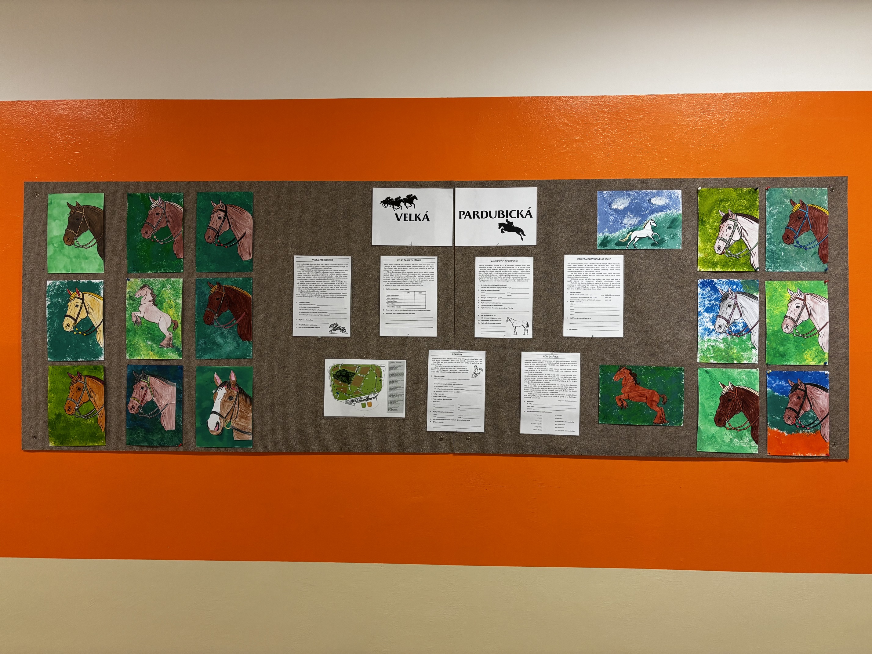 Na chodbě je vytvořena nástěnka, na které se žáci mohou dozvědět co je Taxisův příkop, rekordy dostihů, které je nejrychlejší plemeno koně aj.