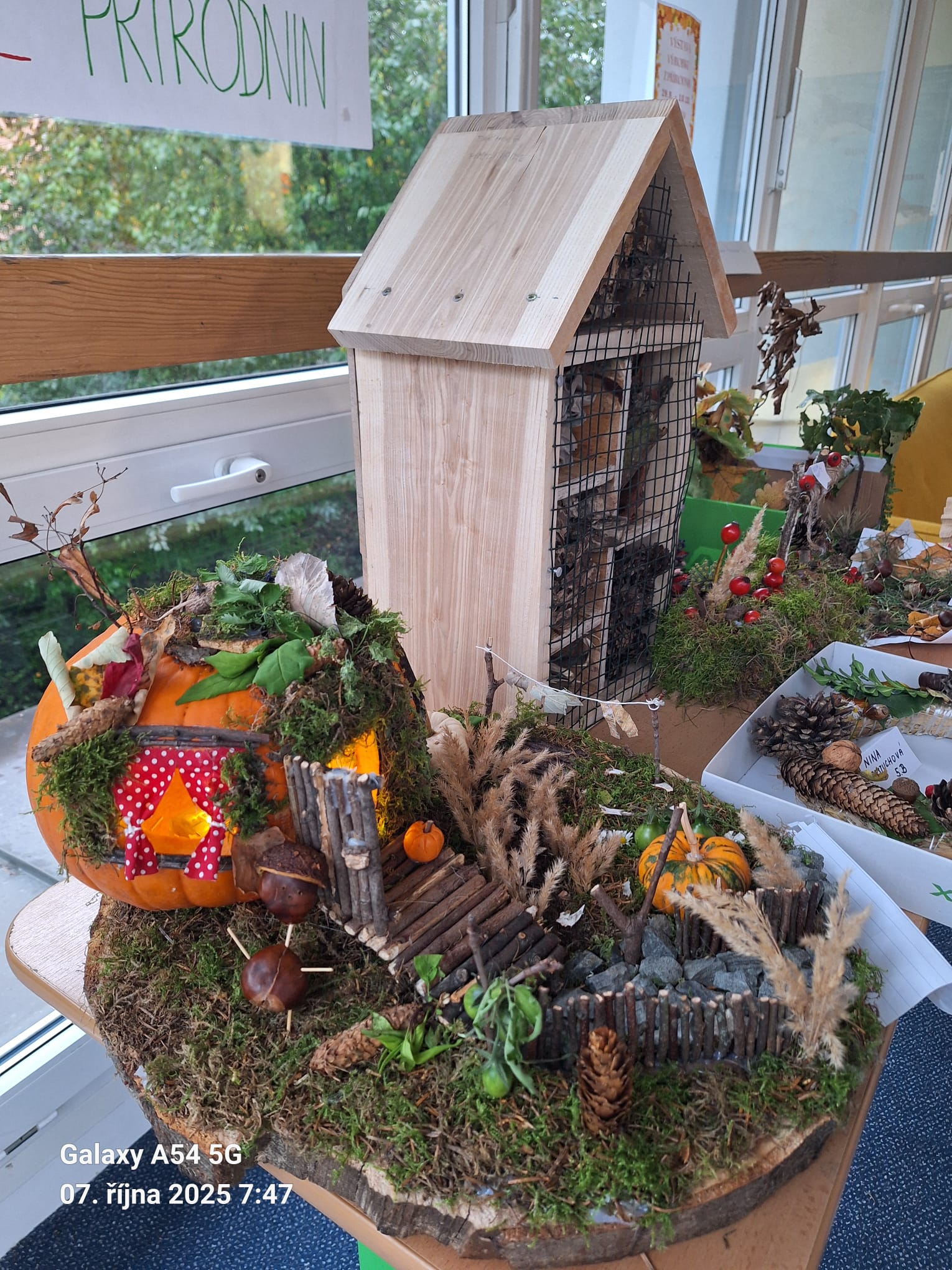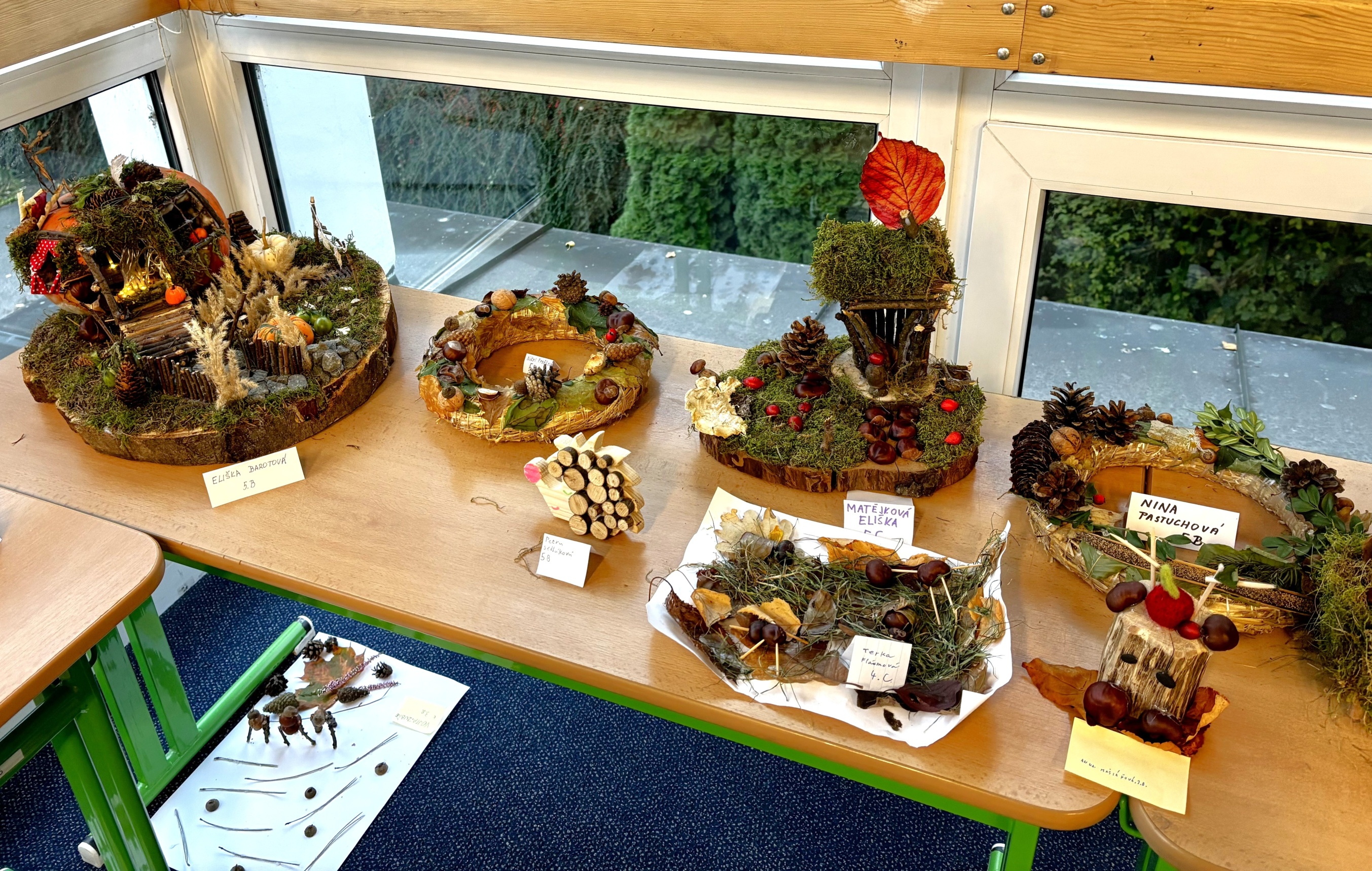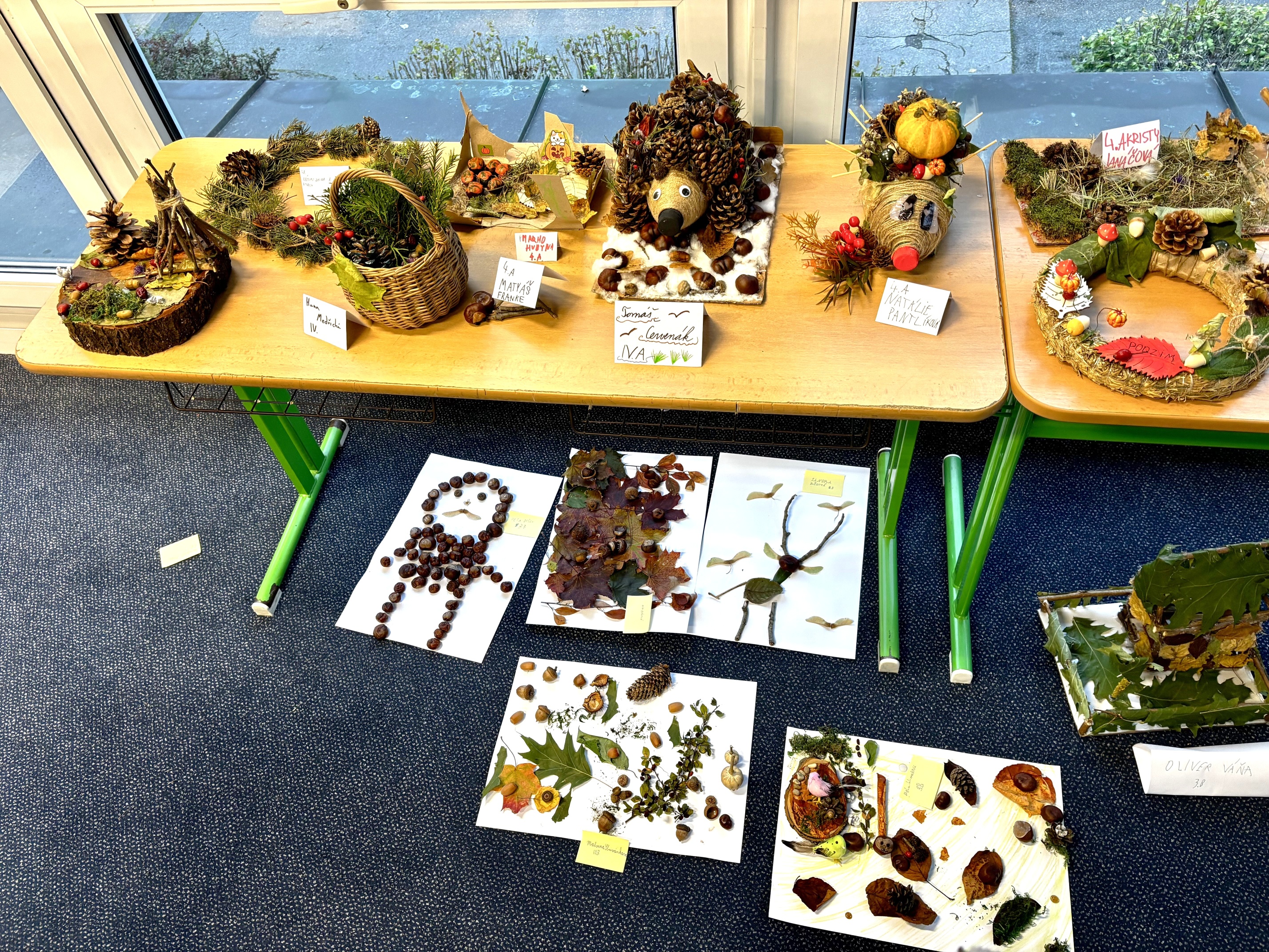 Naši žáci se s nadšením zapojili do podzimní výzvy a vytvořili nádherné výrobky z přírodnin. Fantazie se opravdu meze nekladly – k vidění jsou zvířátka, podzimní věnečky, domečky z dýně a mechu i barevné listové obrazy.